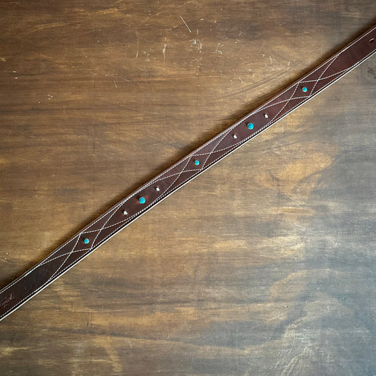 TURQUOISE STUDDED COWBOY BELT - Brown