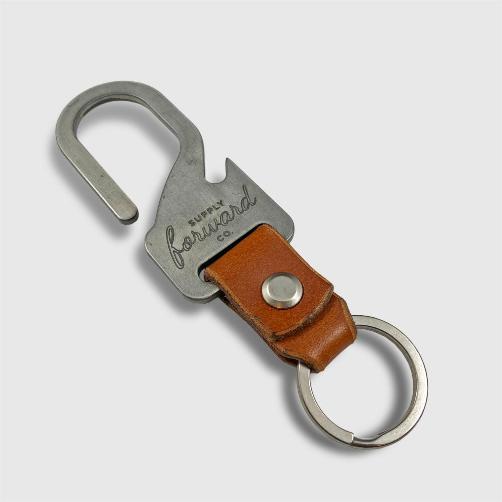 We put our heads together with iNTEND + iNVENT, to develop the Bottle Hook Keychain from the ground up. Designed to hook over the top of your belt for a secure carry, with a recessed cut opposite of the hook opening, to conveniently open non-twist top bottles.