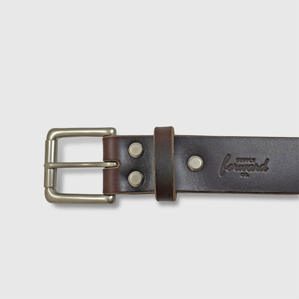 The Classic Belt highlights a sturdy, rugged composition in a simply timeless belt. Crafted with a heavy, 9/10oz Horween Chromexcel leather strap, and high quality, solid brass roller buckle and chicago screw hardware. Features seven notches with one inch spacing between each, for a wide range of fit.