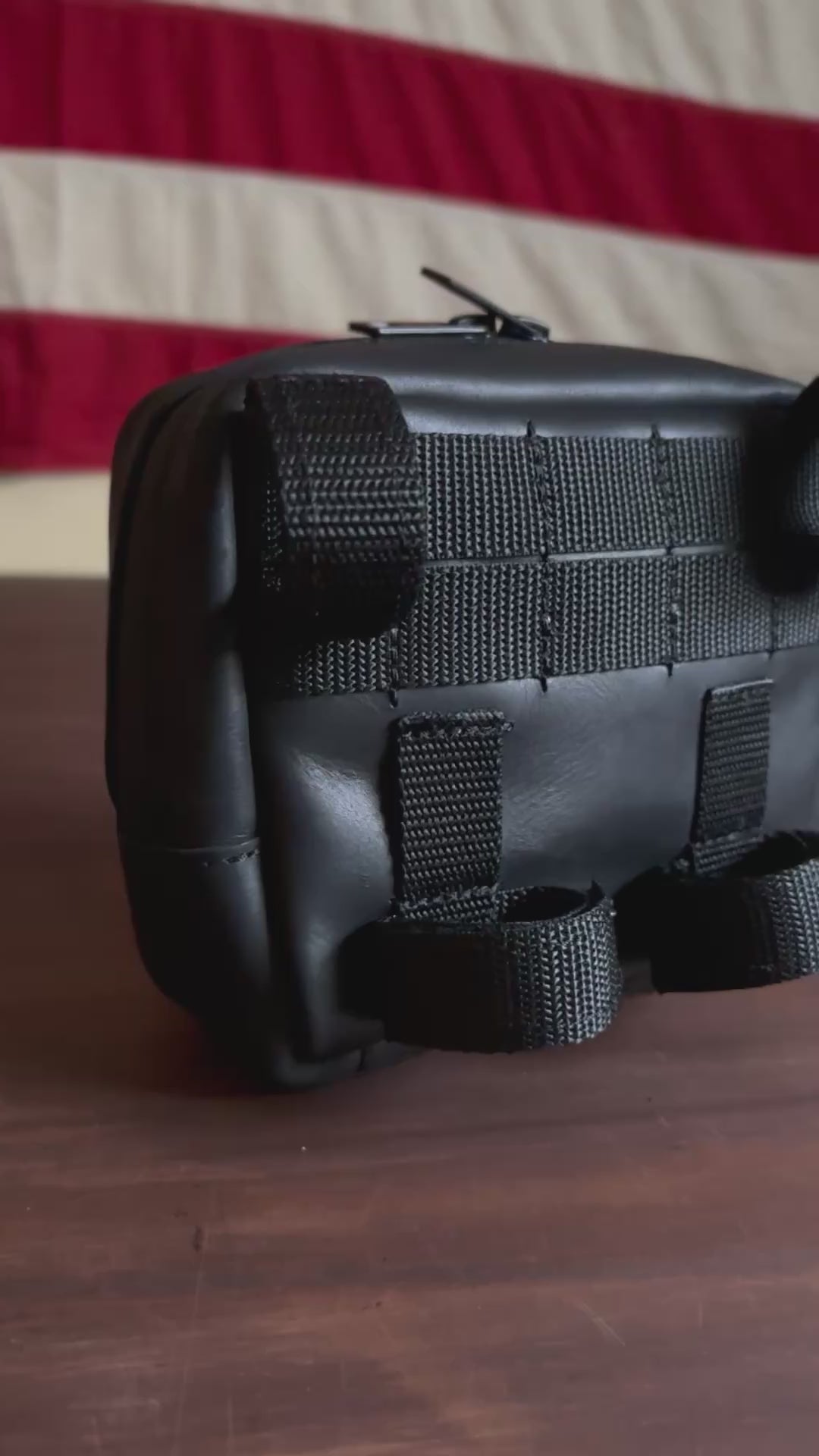 The Handlebar Bag is made with full leather construction, a water resistant zipper, and easily attaches to your motorcycle's handlebars with nylon straps that feature waterproof velcro.