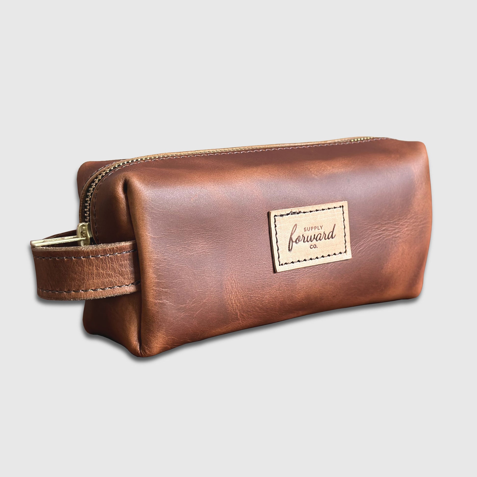 Full leather construction so you can put it through the wringer, unlike the zip-loc bag you've been using.