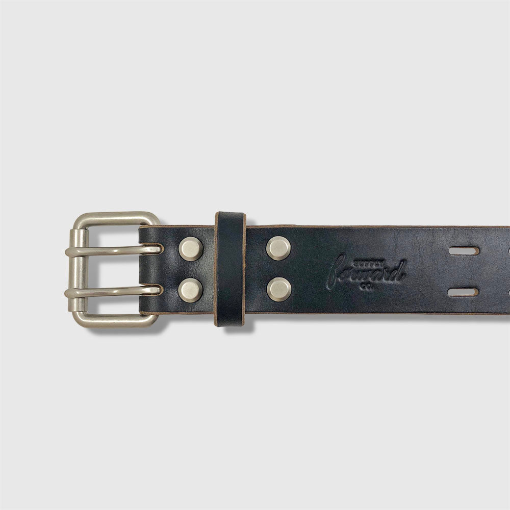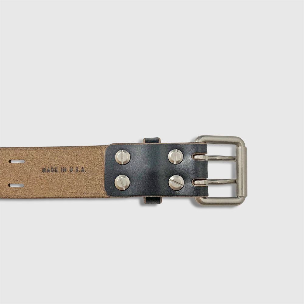 Inspired by a vintage belt of a close friend, the Winnebago belt emphasizes unique and rugged styling. Features a double tongue, roller buckle and rail slots running the full strap length of the belt. Crafted with 9/10oz Horween Chromexcel leather strap, and high quality, solid brass hardware.